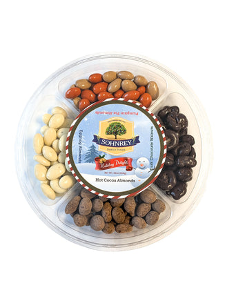 Our new Holiday Delights Candy Round tray features a total of 22 oz of candy split between four different delicious holiday themed confections:
