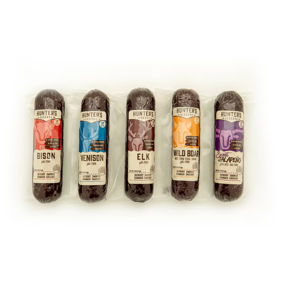 Give yourself a pat on the back with a well deserved snack that’s tasty, satisfying and good for you. This pack comes with five 4oz summer sausages, each with a unique flavor.