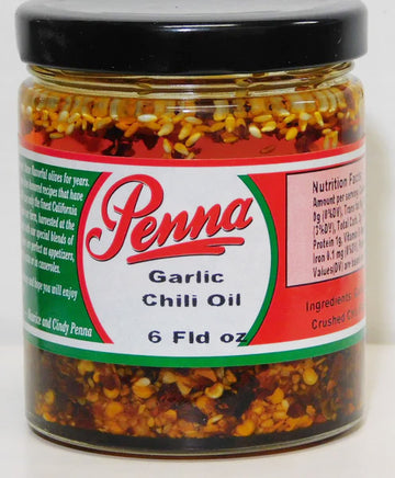 Add a touch of family to your meals with Penna Garlic Chili Oil. This true family farm product has been grown and processed by Penna in Orland, California since 1951. Made from fresh olives on their own farm, this 6 fl oz oil is sure to enhance any dish.