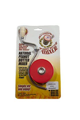 La antigua batidora de mantequilla de maní del abuelo Witmer no es solo para mantequilla de maní. Simplemente conecte esta herramienta inteligente a su frasco de mantequilla de almendras de Sohnrey Family Foods enroscando la tapa; revuelva usando la manivela; ¡y disfrutar!