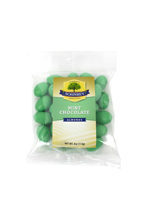Las almendras con chocolate y menta se cubren primero con chocolate con leche y con una segunda capa de un dulce cremoso de menta verde. El suave sabor del chocolate con menta recuerda a un suave helado de menta y chocolate, ¡pero con una deliciosa almendra crujiente!