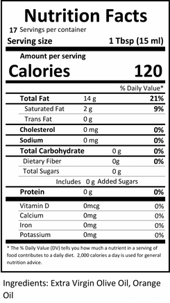Ingredientes : Aceite de Oliva Virgen Extra y Aceite de Naranja