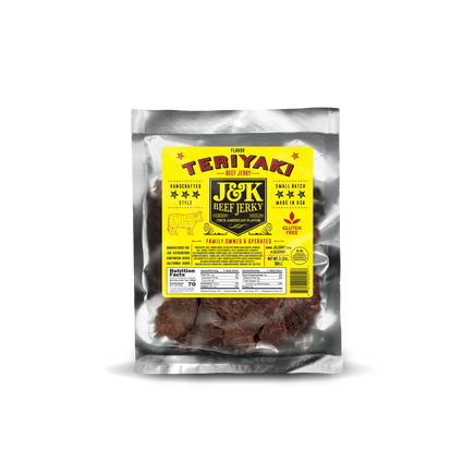 J&K'S  Teriyaki flavor is made with 100% USDA premium sirloin and handcrafted from start to finish. At 13g of protein per serving they use combination of teriyaki, brown sugar, onion, garlic and maple to create a sweet and savory flavor that is absolutely delicious.