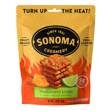 Crafted in Sonoma, California Wine Country since 1931, these limited edition Habanero Lime cheese crisps bring a bold, spicy kick with a zesty twist. Made from real cheese, each 2.25 oz serving delivers 9g of protein, is gluten-free, and rBST-free. Perfect for those who love a flavorful snack rooted in family farm tradition.